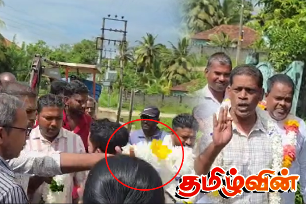 தேசிய மக்கள் சக்தியின் நாடாளுமன்ற உறுப்பினர் ஆதம்பாவா மலர் மாலையை கழட்டி