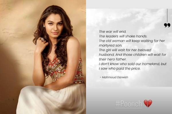 அதில், ” போர் முடிவடையும். தலைவர்கள் கைகுலுக்கிக் கொள்வார்கள். தாய் தனது தியாக மகனுக்காகக் காத்திருப்பாள். பெண் தனது அன்பான கணவருக்காகக் காத்திருப்பாள்” என்று இருக்கும் அந்த பதிவை தான் ஆண்ட்ரியா பகிர்ந்துள்ளார்.