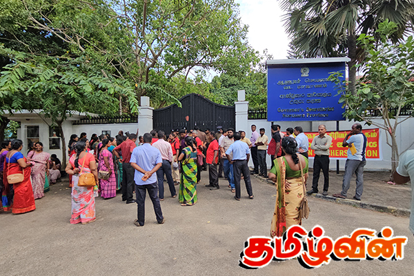 வட மாகாண கல்வி திணைக்களத்தினால் சேவையின் தேவை கருதி என மேற்கொள்ளப்பட்ட ஆசிரிய இடமாற்றம் பாரபட்சமான என தாம் கருதும் நிலையில் குறித்த இடமாற்றத்தை உடன் இடைநிறுத்தி மீள மேற்கொள்ள வேண்டும் என போராட்டக்காரர்கள் கோரிக்கை முன்வைத்துள்ளனர்.