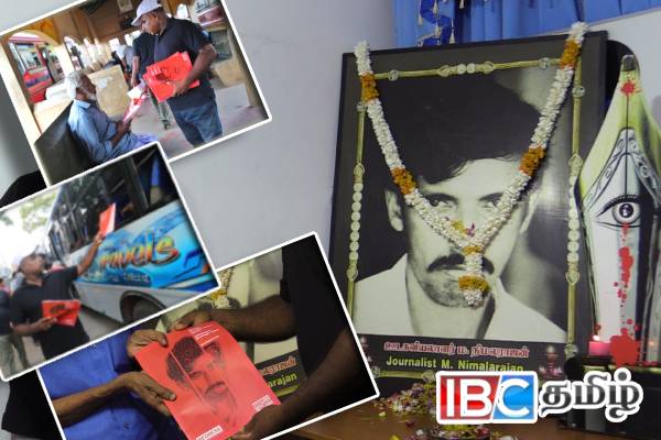 படுகொலை செய்யப்பட்ட ஊடகவியலாளர் நிமலராஜனுக்கு நீதி கோரிய விசாரணை அறிக்கை யாழ் (Jaffna) நகரில் விநியோகிக்கப்பட்டது.
