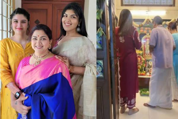 அவரை தொடர்ந்து, அவரது இரண்டு மகள்களும் தற்போது ஸ்லிம் ஆக ஆளே மாறியுள்ளனர். தற்போது, விநாயகர் சதுர்த்தி முன்னிட்டு குஷ்பூ இல்லத்தில் கொண்டாடப்பட்டுள்ளது.