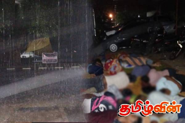 மழையிலும் போராட்டத்தில் ஈடுபட்டுள்ளனர்.