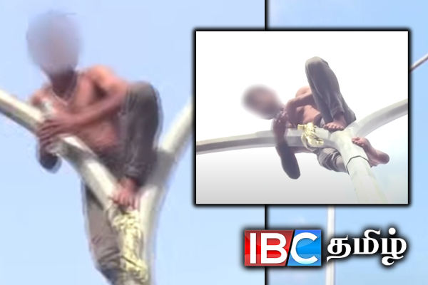 தீயணைப்புப் படையினருடன் இணைந்து, காவல்துறையினர் குறித்த நபரை தெரு விளக்கு கம்பத்திலிருந்து இறக்கிப் பாதுகாப்பான இடத்திற்கு அழைத்துச் சென்றுள்ளனர்.