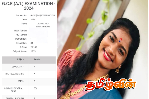 மாணவி ஜெயந்தன் பவதாரணி முதல் இடம் பிடித்து சாதனை படைத்துள்ளார்.