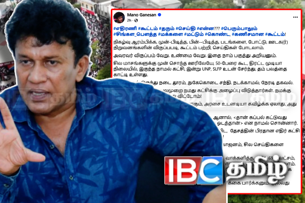 குறித்த பொதுப் பேரணி தொடர்பில் நாடாளுமன்ற உறுப்பினர் மனோ கணேஷன் தனது உத்தியோகபூர்வ முகநூல் பக்கத்தில் பதிவிட்டுள்ளார்.