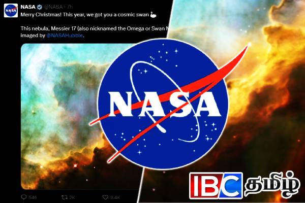 இந்தநிலையில், ஹபிள் வான் தொலைநோக்கி மூலமாக எடுக்கப்பட்ட ஸ்வன் நெபுலா புகைப்படத்தை சமூக வலைத்தளத்தில் பகிர்ந்து நாசா கிறிஸ்துமஸ் வாழ்த்துக்களை தெரிவித்துள்ளது.