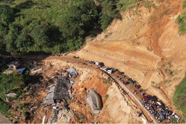 மண்சரிவால் வீதியில் தேக்கமடைந்த மண் குவியல்கள் அகற்றப்பட்டு, நிரந்தர தீர்வு அமல்படுத்தப்படும் வரை பாதுகாப்பான போக்குவரத்தை உறுதி செய்யும் வகையில் வீதி தற்காலிகமாக மறுசீரமைக்கப்பட்டுள்ளது.