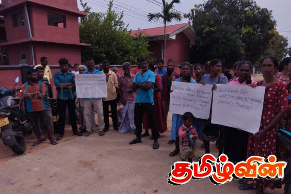 கிளிநொச்சி-பூநகரி பிரதேச செயலகம் முன்பாக அப்பகுதி மக்கள் போராட்டத்தில் ஈடுபட்டுள்ளனர்.