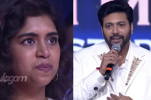 மேடையில் ரவி மோகன் பேசியதை கேட்டு கீழே அமர்ந்து இருந்த கெனிஷா கண்ணீர் விட்டு இருக்கிறார்.