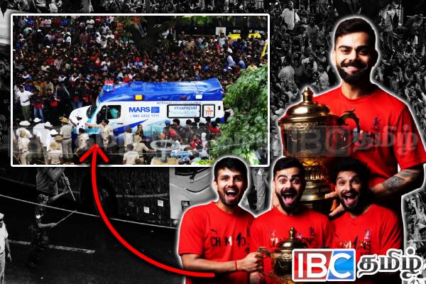 2025 ஐபிஎல் (IPL) கிண்ண வெற்றி விழாவின் போது, பெங்களூரு சின்னசாமி மைதானத்தில்