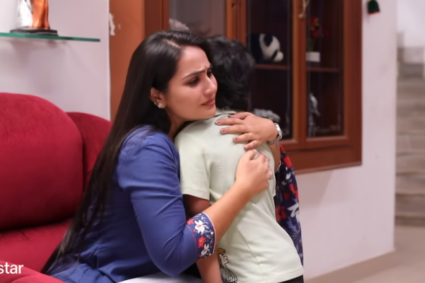ரோகிணி சீக்ரெட் ஆக வளர்த்து வரும் மகன் கிரிஷ் தனது பள்ளியில் ஒரு அசைன்மென்ட் கொடுத்திருக்கிறார்கள் எனவும், தன்னால் அதை எழுத முடியாது என்றும் அவர் கூறுகிறார்.
