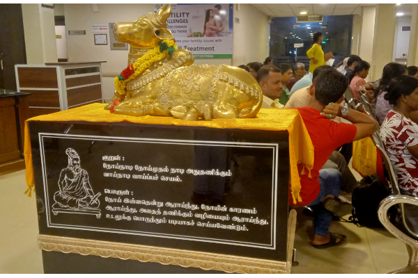 நந்தி வைக்கப்பட்டுள்ள மேடையின் முகப்பில் திருவள்ளுவர் உருவம் பொறிக்கப்பட்டு, நோய் மருத்துவம் பற்றி பேசும் திருக்குறள் ஒன்றும் பதிவிடப்பட்டுள்ளது.