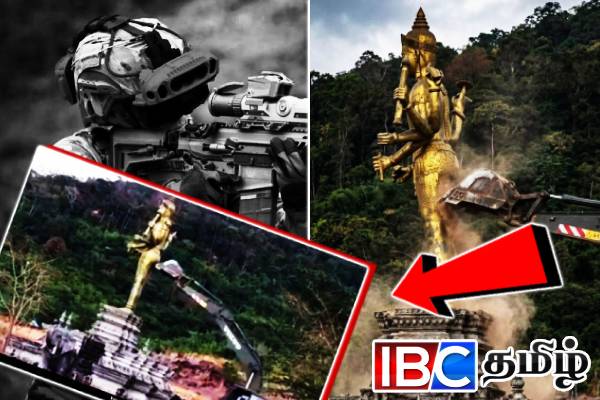 இந்தநிலையில், 29 அடி உயரமான இந்த விஷ்ணு சிலையை தாய்லாந்து இராணுவத்தினர் இடித்து அகற்றியுள்ளனர்.