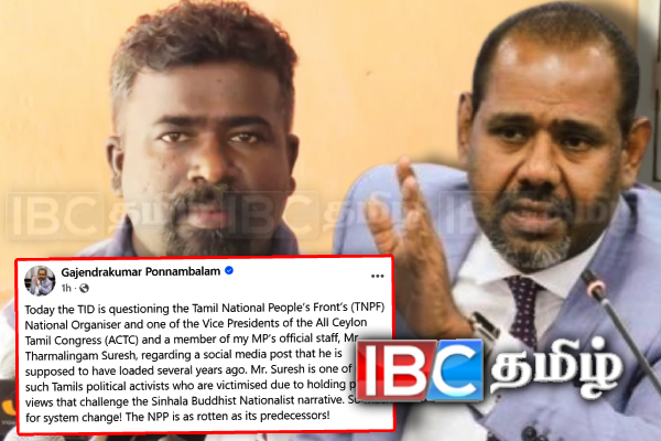 அதன்படி, அவருடைய பதிவில், “இன்று பயங்கரவாத விசாரணைப் பிரிவினர் (TID) தமிழ் தேசிய மக்கள் முன்னணியின் (TNPF) தேசிய அமைப்பாளரும் அகில இலங்கை தமிழ் காங்கிரஸின் (ACTC) துணைத் தலைவர்களில் ஒருவரும் எனது நாடாளுமன்ற உறுப்பினரின் அதிகாரப்பூர்வ ஊழியர்களில் ஒருவருமான தர்மலிங்கம் சுரேஷிடம், பல ஆண்டுகளுக்கு முன்பு அவர் பதிவேற்றியதாகக் கூறப்படும் ஒரு சமூக ஊடகப் பதிவு தொடர்பாக விசாரித்து வருகின்றனர்.