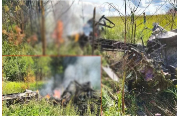 இதனால் கட்டுப்பாட்டை இழந்த விமானம் தரையில் விழுந்து தீப்பிடித்து எரிந்தது. இந்த விபத்தில் விமானத்தில் இருந்த 4 பேரும் உடல் கருகி பரிதாபமாக உயிரிழந்தனர்.