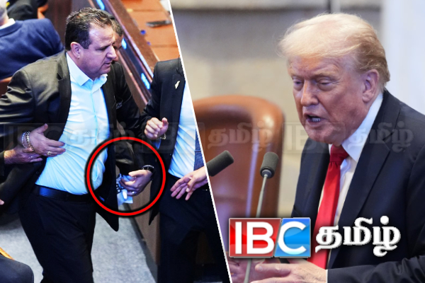 இவ்வாறானதொரு பின்னணியில், இஸ்ரேலிய நாடாளுமன்றத்தில் ட்ரம்ப் உரையாற்றிக் கொண்டிருந்த போது, குறுக்கிட்ட இரண்டு எம்பிக்கள் அவரை கடுமையாக விமர்சித்து பாலஸ்தீனத்தை அங்கீகரிக்குமாறு கூச்சலிட்டுள்ளனர்.