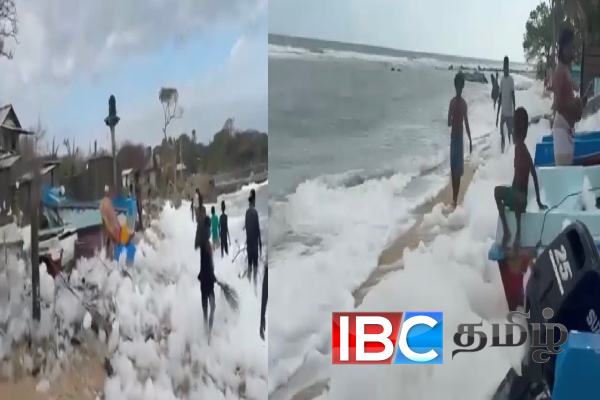 யாழ்ப்பாண கடற்கரையில் திடீரென வெள்ளை நுரை