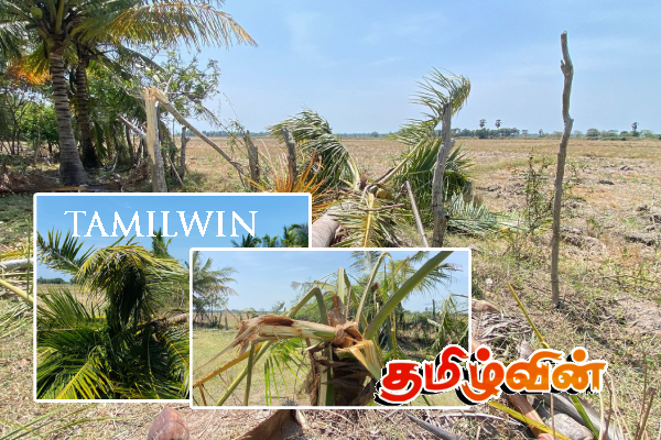 நேற்று (10) இரவு புகுந்த காட்டு யானைக் கூட்டம் பல தென்னை மரங்களை