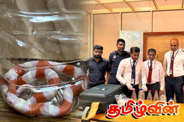 தாய்லாந்தில் இருந்து சென்னை வழியாக இண்டிகோ ஏர்லைன்ஸ் விமானம் 6E1173 மூலம் சென்னை வந்த 40 வயதுடைய பெண்ணின் பொதிகளில் மறைத்து வைக்கப்பட்டிருந்த பாம்புகள் கண்டுபிடிக்கப்பட்டுள்ளன.